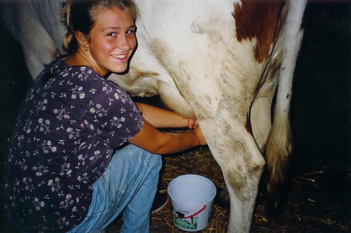 Jessica milking Arshire cow Buttercup. Photo appeared in Countryside Magazine!