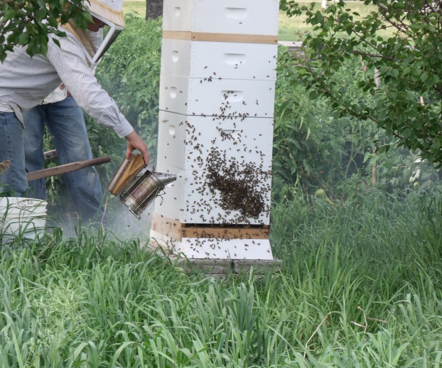 Preparing to harvest honey.